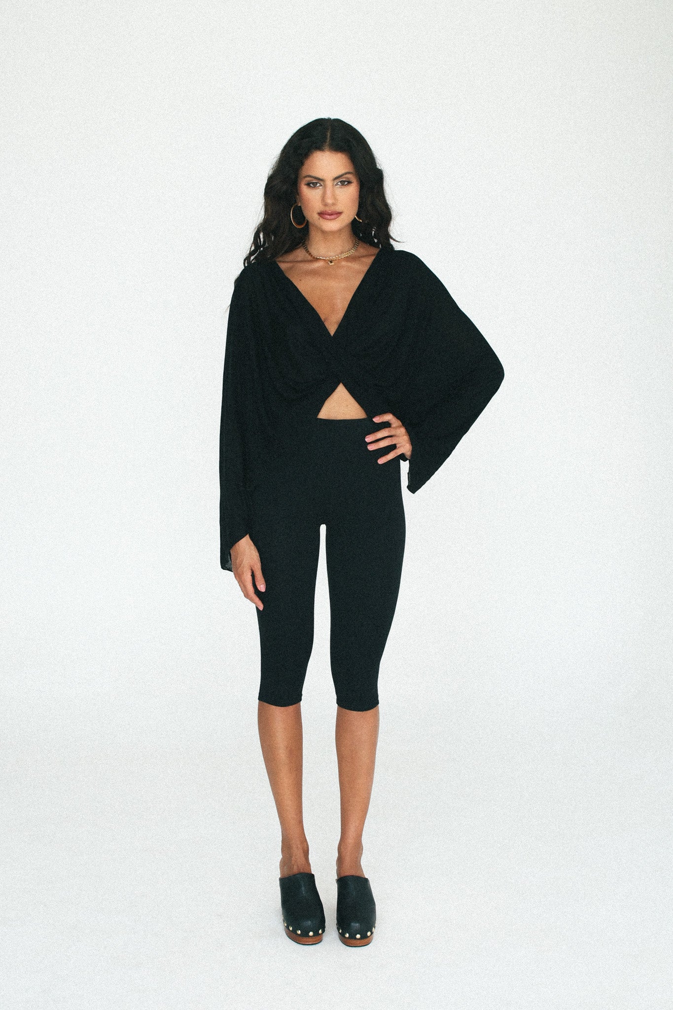NO.128 capri pant in Black. The only capri you will ever need. This is the ultimate foundational piece, crafted from our incredibly soft, yet structured Organic Bamboo Spandex blend.