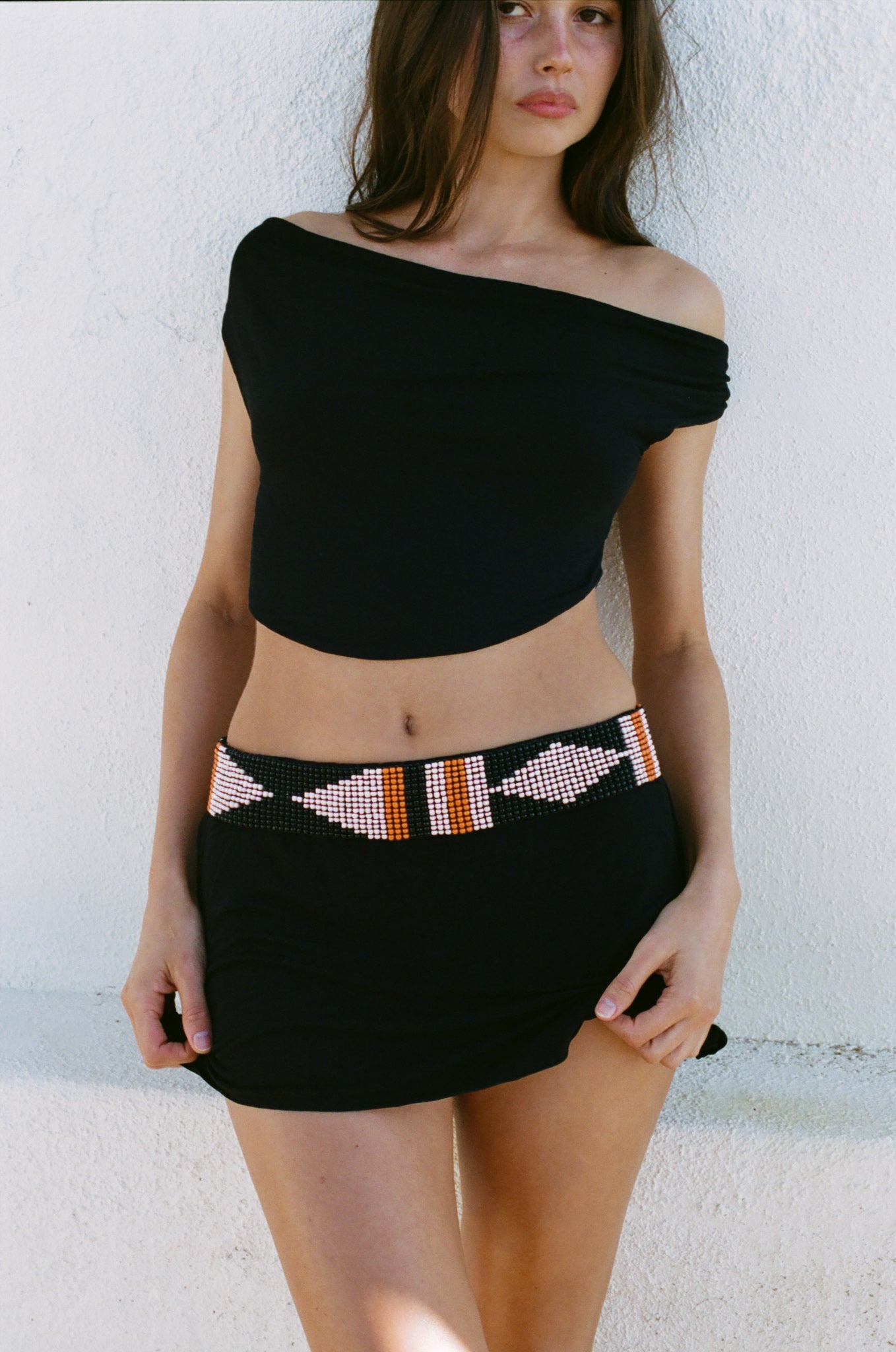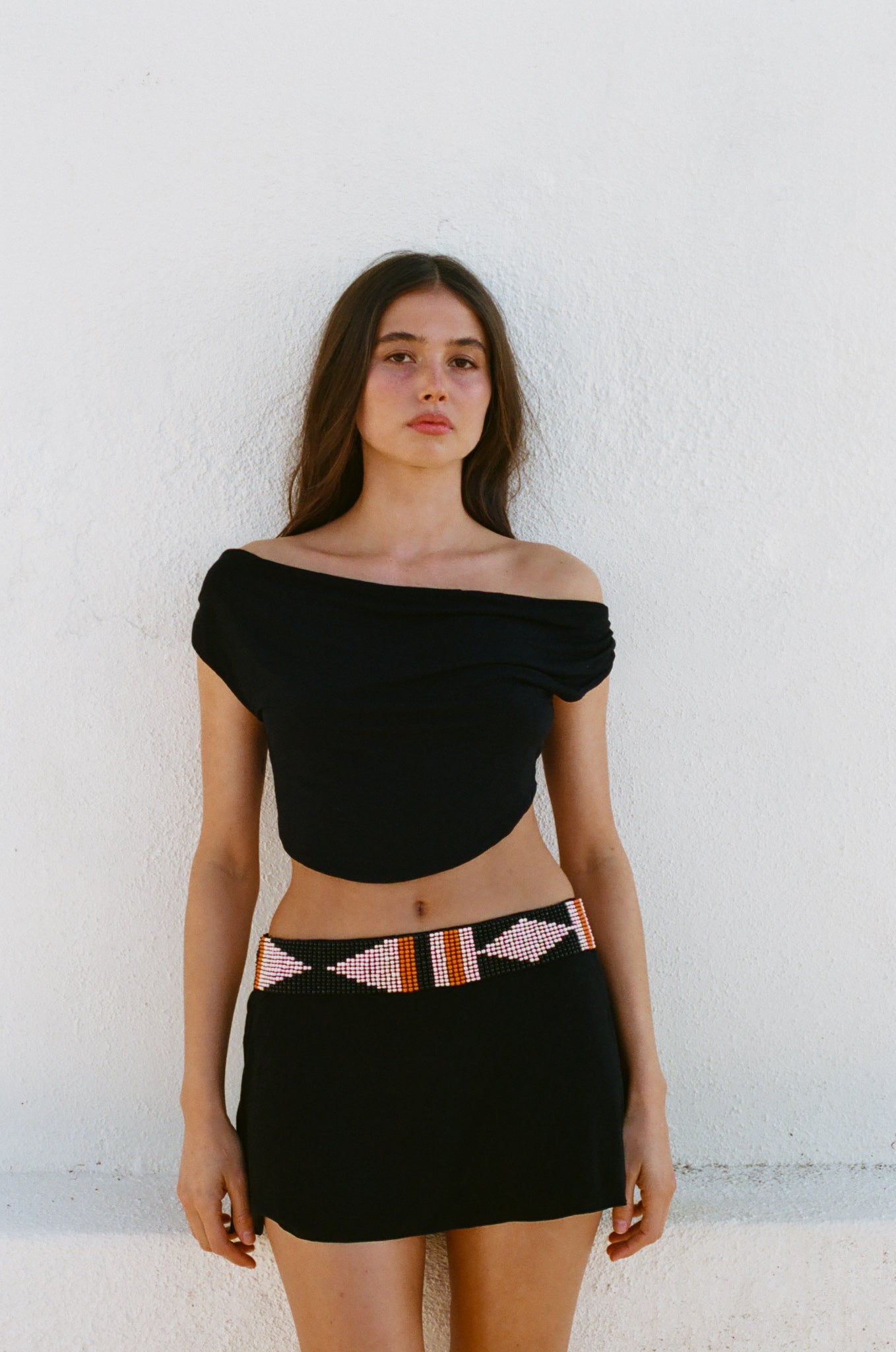 Cute but curated. Maha is the top that transitions seamlessly from a morning coffee run to late-night drinks. Wear it as a classic cowl neck or style off-shoulder for a body-skimming fit.