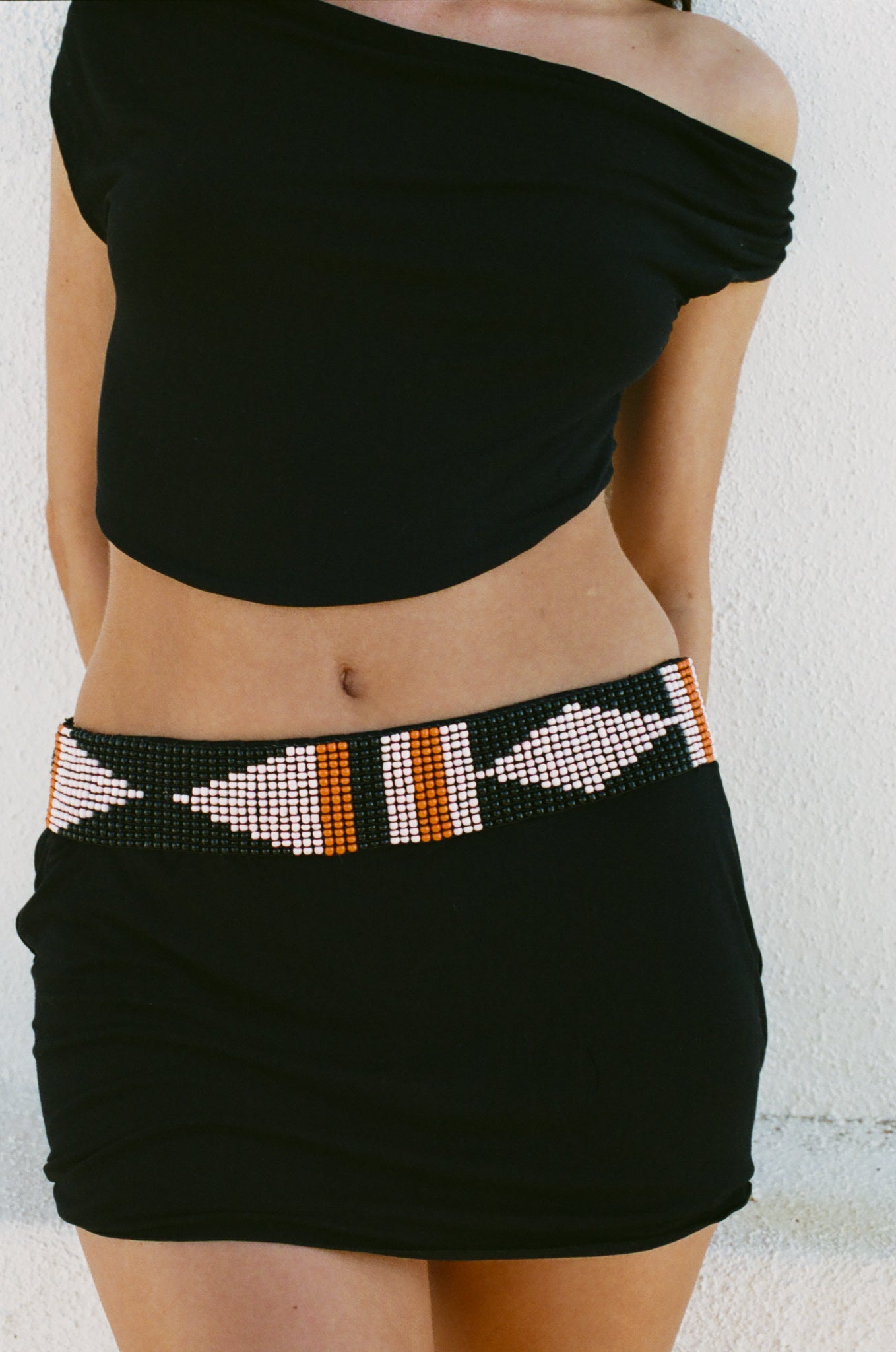 A tribute to the downtown party girl, the Soho Mini is all about the details. The artisanal beaded waistband rests perfectly on the hips, offering a glimmering, jewelry-inspired edge to the sleek, midnight-black modal.