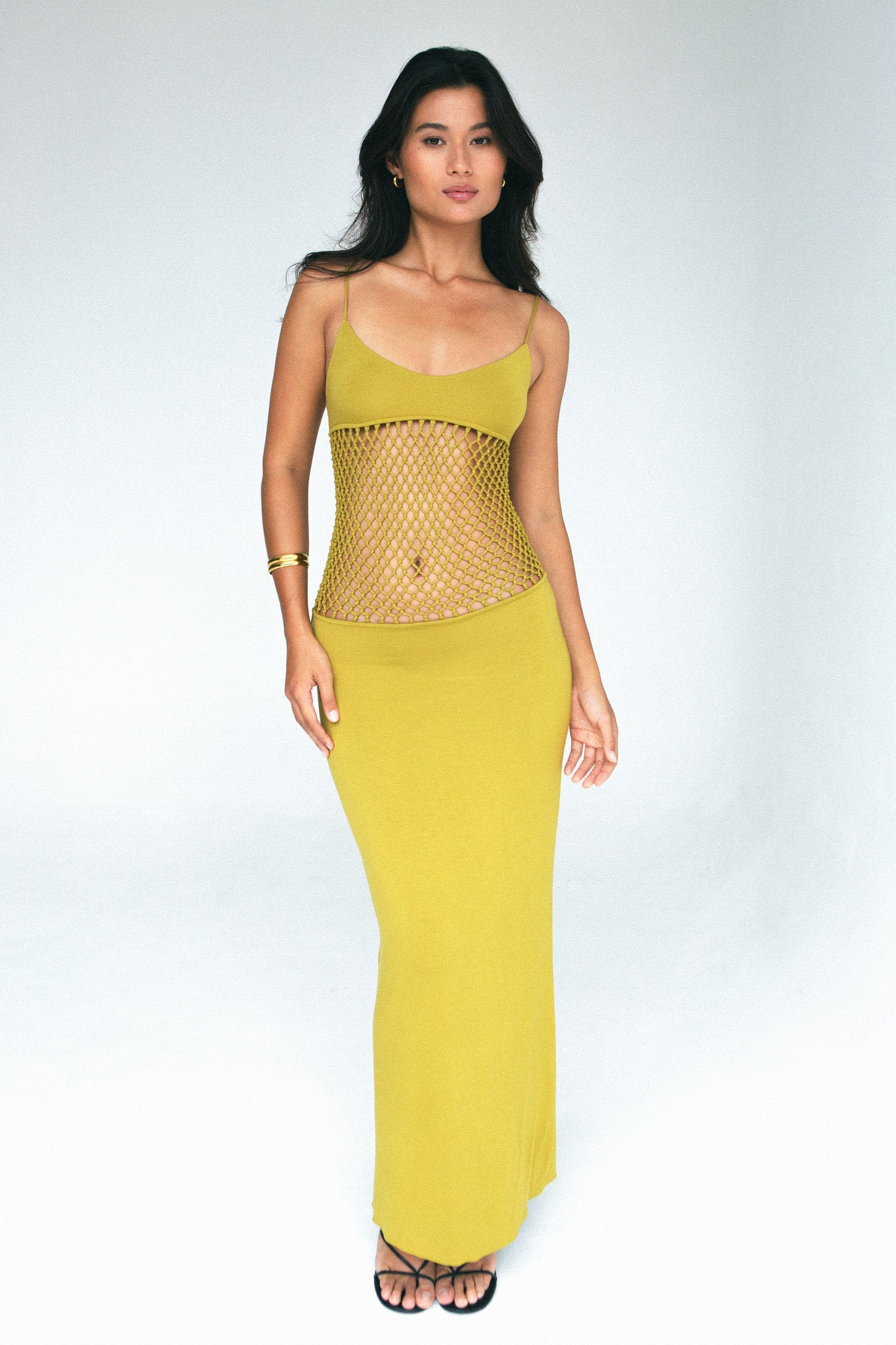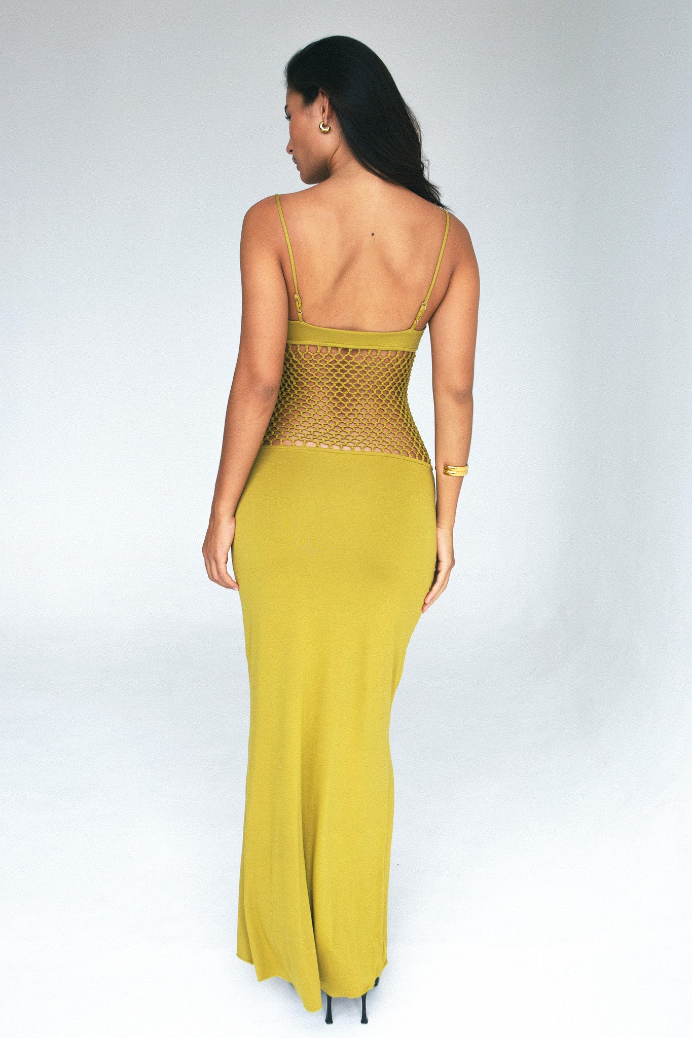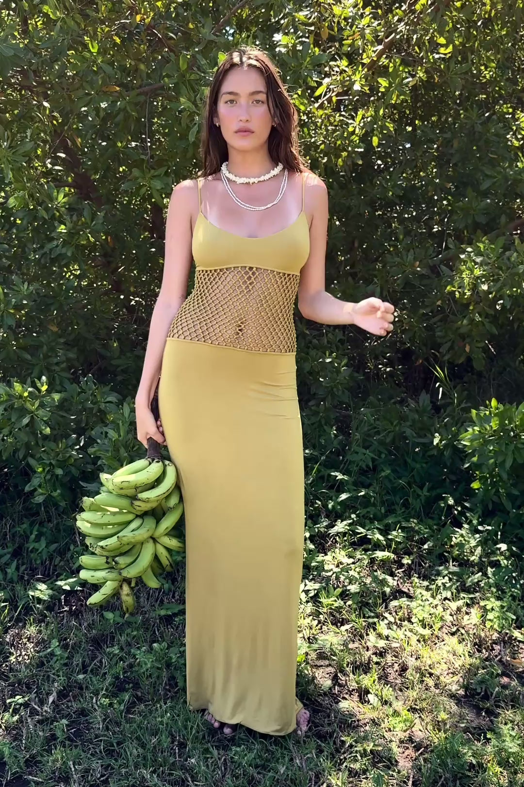 Our boldest maxi yet. Butter-soft Modal Tissue meets a daring, hand-knotted macrame waist. Pair with gold stacks and a sleek bun for a high-impact evening look.