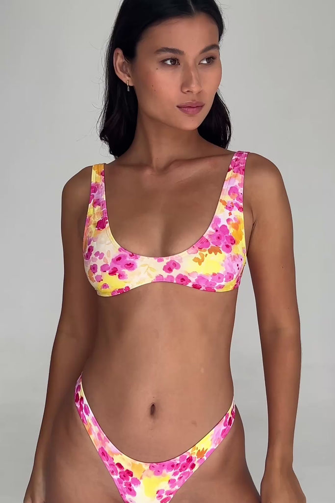 The Hope swim top is our take on the classic scoop-neck, reimagined in a sleek, athletic-inspired silhouette. Designed for the sun-seeker who likes a little more hold without sacrificing style. Finished in our new dreamy, floral-inspired Romance print.
