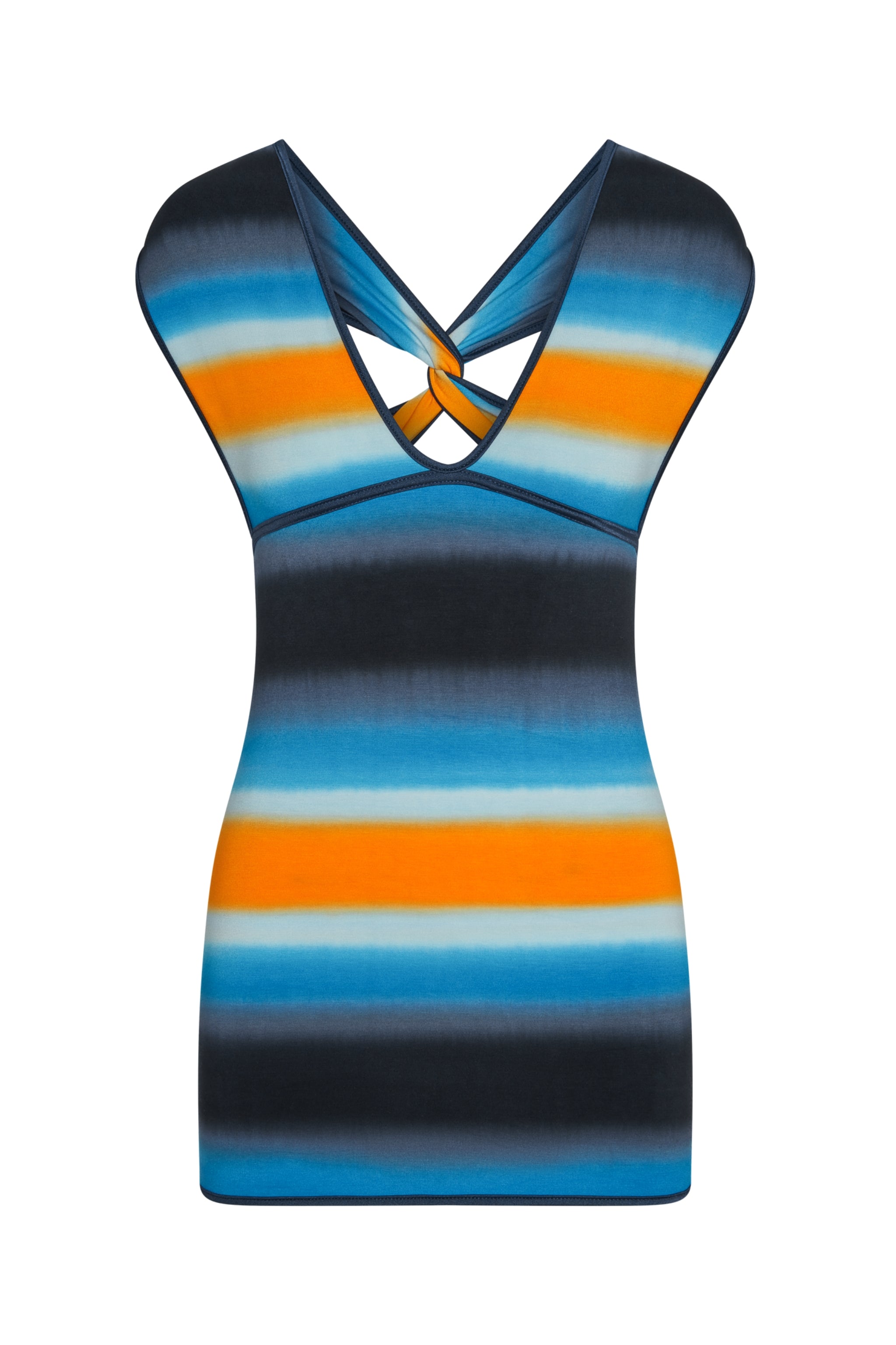 The Diaz mini in Jupiter is the ultimate fusion of artisanal craft and a sleek, sculptural fit. Hand-painted in our vibrant, sunset-inspired Jupiter print, this bodycon dress is a standout statement piece.