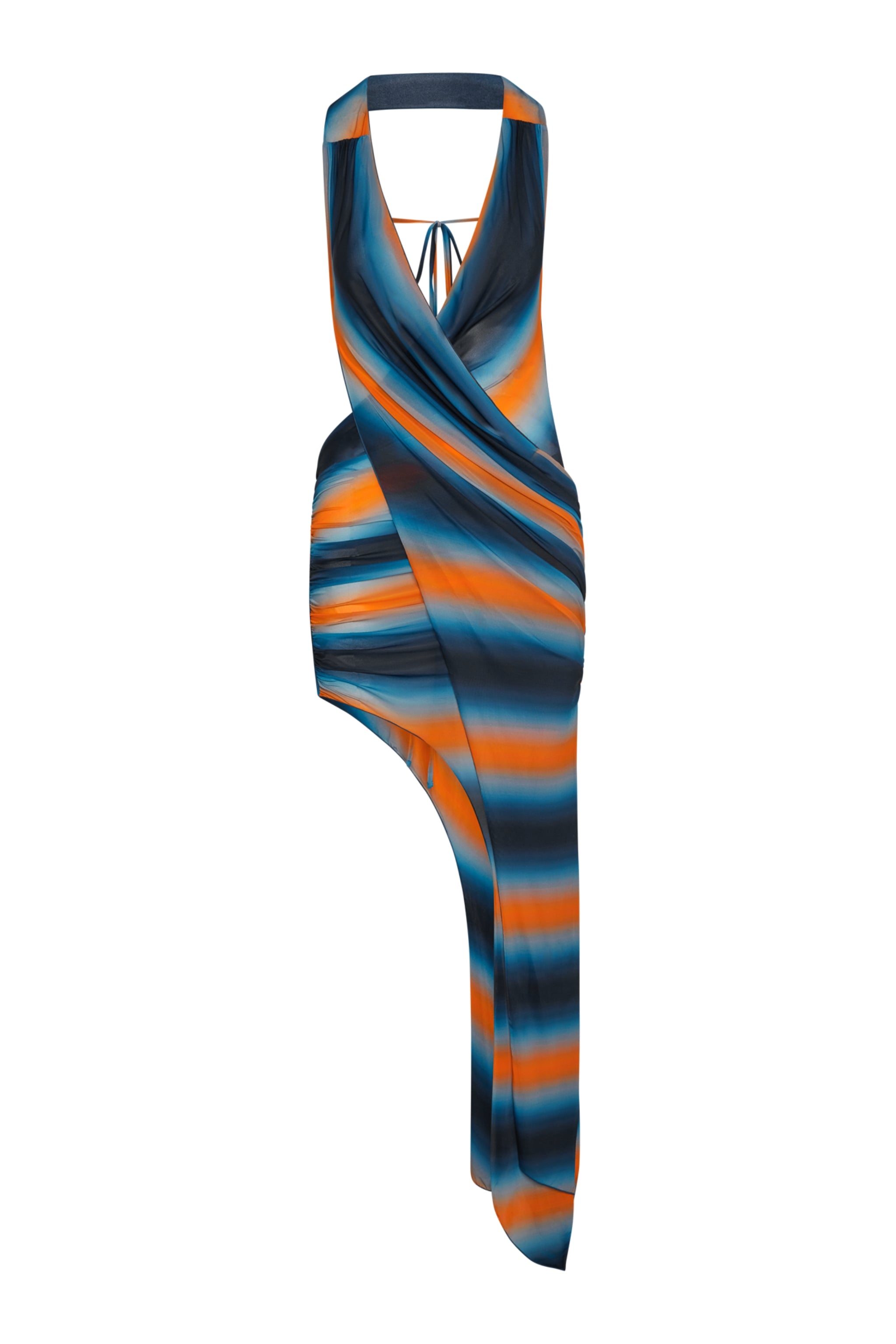 Sustainable as it is striking—meet Georgie. Crafted from premium Italian Mesh Soul Eco, this printed asymmetrical maxi dress offers a stunning, ethereal drape, dramatic cut-outs, and a high-impact leg slit. Weightless, effortless, and eternally iconic.